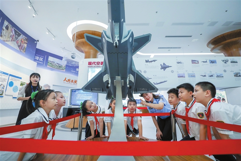 湖州市月河小學教育集團日前邀請湖州吳興區公安分局湖東派出所民警進校開展“普及國防教育,弘揚愛國精神”主題教育,帶領學生學習領土和國防知識,參觀民防教育館,增強國防意識。(陸一平)