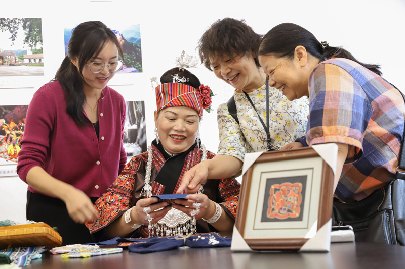 苗族刺繡手工藝家正在向當地村民傳授刺繡技藝。謝尚國攝
