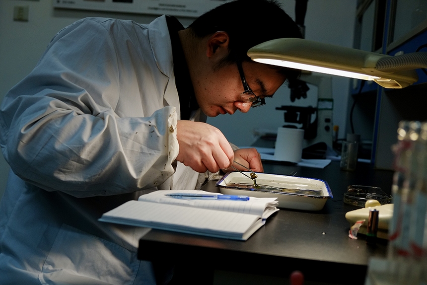 技術人員在實驗室對網捕樣本進行分析。杭州市西湖水域管理處供圖