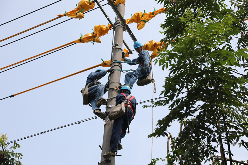 國網紹興供電公司在10千伏東安線上進行4G智能開關完成量子加密終端安裝工作。許倩汝攝