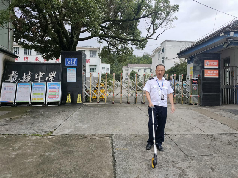 安吉縣煙草專賣局工作人員正在校園周邊進行實地測量。王光明攝
