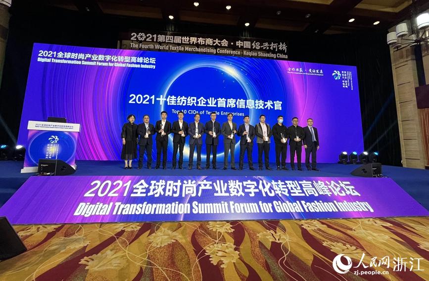 現場對十佳紡織企業數字技術創新案例、十佳紡織企業首席信息技術官進行表彰。人民網 張麗瑋攝