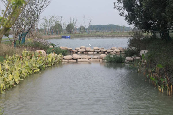 上海市青浦區金澤鎮新池村,就是位于“三不管”地帶的一個村落。如今,一個展現上海鄉村特點、江南水鄉韻味、數字智慧特征的江南圩田樣板區在這里基本建成。這是“水鄉客廳”重點項目之一,面積約810畝,以江南圩田圩岸為場景,通過原有的“林、田、水、莊”為基底進行生態筑景、鄉土種質原生保護、魚塘凈水生態循環、智慧農業精細管控,繪制一個“一分林、一分莊、三分水、五分田”的原鄉畫卷,實現江南生態魚米水鄉風韻。