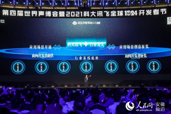 在第四屆世界聲博會暨2021科大訊飛全球1024開發者節上,訊飛開放平臺2.0正式發布。人民網 陳浩攝