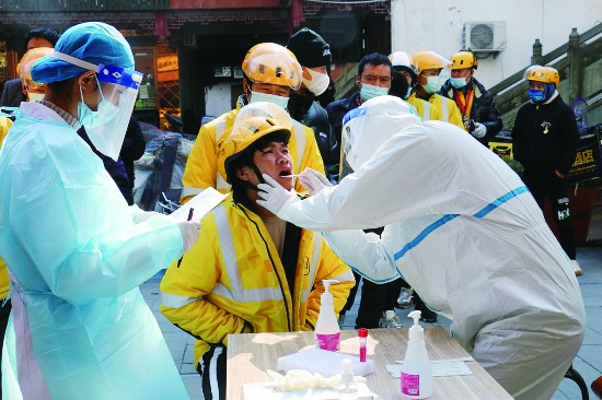 11月8日下午,在金華永康市西城街道紫微社區居委會附近的美團站點,外賣小哥陸續趕來。在這里,由西城街道組織開展的免費核酸檢測采樣上門服務正有序進行。外賣小哥每天行走于餐飲店與消費者之間,這一群體的健康安全關系到很多人的安全。為做好疫情防控常態化工作,保障群眾網絡訂餐食品安全,考慮到外賣小哥的工作特殊性,永康市西城街道開辟“綠色通道”,組織西城衛生院“醫療小分隊”上門為他們提供免費核酸檢測服務,并送上口罩、消毒液等防疫物品,筑牢防控墻。當天,現場共有200余名外賣小哥完成核酸檢測采樣。(舒珊珊)