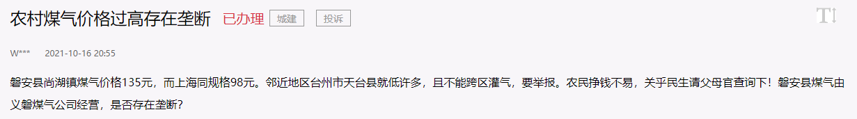 家住農村,煤氣價格卻比上海貴、比鄰市貴。最近,有網友懷疑居住地煤氣收費存在壟斷行為,通過“領導留言板”留言求證。