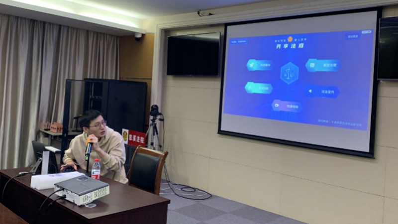法院工作人員介紹“共享法庭”。慈溪法院供圖