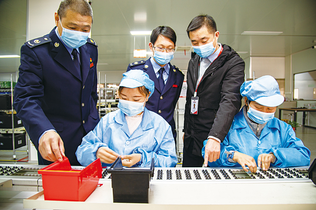 11月12日,稅務人員深入浙江某運動器材公司車間,了解企業一線員工工作狀況。國家稅務總局金華永康市稅務局組建多支服務小分隊,分赴企業送去“政策紅包”,為企業一線員工開展政策解讀服務,輔導做好個人所得稅專項附加扣除等工作,為下一年度個人所得稅匯算清繳打下基礎。(胡肖飛)