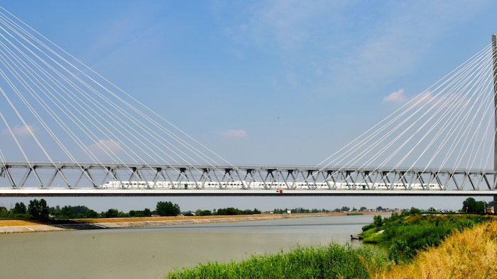 動車組列車飛馳經過商合杭高鐵裕溪河特大橋。劉振華攝
