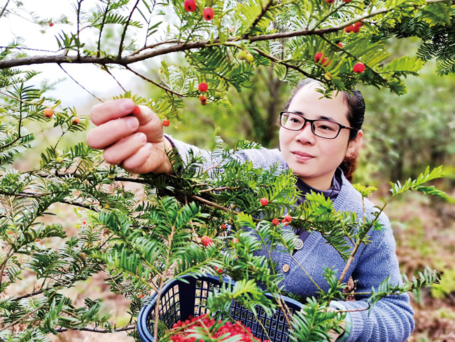 “最近有不少義烏、浦江和蘭溪等地的朋友知道紅豆掛果了,特地趕來采摘,拿去泡酒喝!11月15日上午,在浙江義烏市一紅豆杉種植基地,面對一波波前來采摘紅豆的游客,基地負責人貝新法熱情地招呼大家文明采摘。他說,眼前這片“相思紅林”近300畝,2015年陸續開始掛果,每年都吸引不少游客來此觀光和采摘紅豆,基地逐漸成了遠近聞名的網紅打卡點。紅豆杉林的引進,帶來經濟效益和旅游熱度,同時通過土地流轉,村民也獲得了一筆不菲的收益,不少村民還在紅豆杉基地幫工,收入穩定。(王志堅)