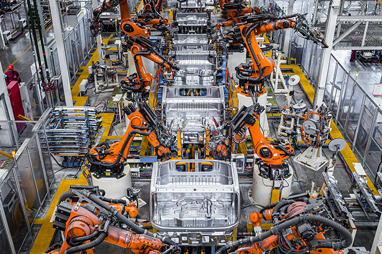 江汽集團新港生產基地焊裝車間機器人正在作業。江汽集團供圖