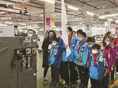 走進精品圖書車間,濃郁的紙香撲面而來,加工設備隆隆運轉,一線工人往來穿梭……現場,同學們在老師的帶領下實地參觀、了解文具生產的過程。隨后,大家前往品牌展廳,琳瑯滿目的創意文具讓大家目不暇接,潮流化的文具設計理念也向同學們傳達著新時代下創新與融合發展的重要意義!敖裉臁两健捏w驗,不僅讓我學習了文具、印刷、紙張等相關專業知識,對安全購買、使用文具的認識也有所提高!睂幉ㄊ兄性W601班的李金璇說道。