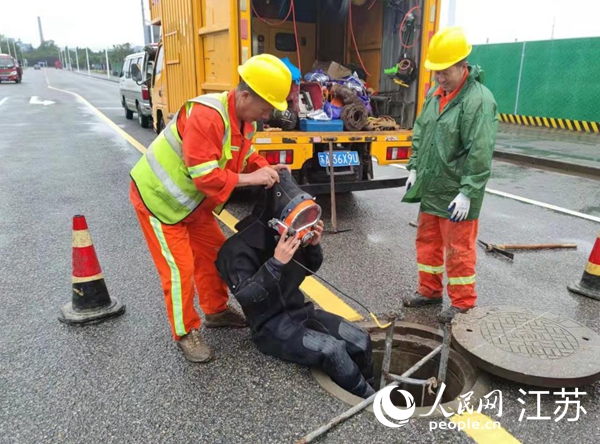 “蛙人”準備下井清除障礙物。人民網 張瀚天攝