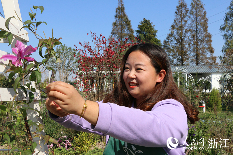 林曉正在花園修剪花枝。人民網 王蕭蕭攝