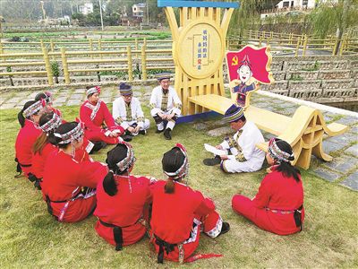 據了解,這支“鐵姑娘宣講隊”來源于三都鎮深入挖掘鎮頭大隊建造水庫的故事,還原了當時“鐵姑娘隊”在社員們建造水庫休息時,給大家表演歌舞,給社員們打氣的場景。