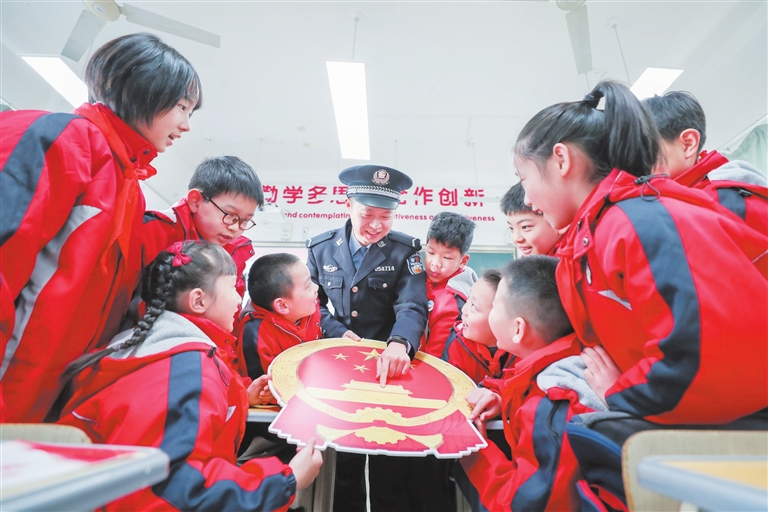 國家憲法日即將到來,湖州市新風實驗小學12月2日邀請湖州吳興區公安分局愛山派出所民警來校開展“憲法伴我成長”主題教育,以上課、發放宣傳冊、講憲法知識小故事等方式,幫助學生強化憲法和法律意識。(陸一平)