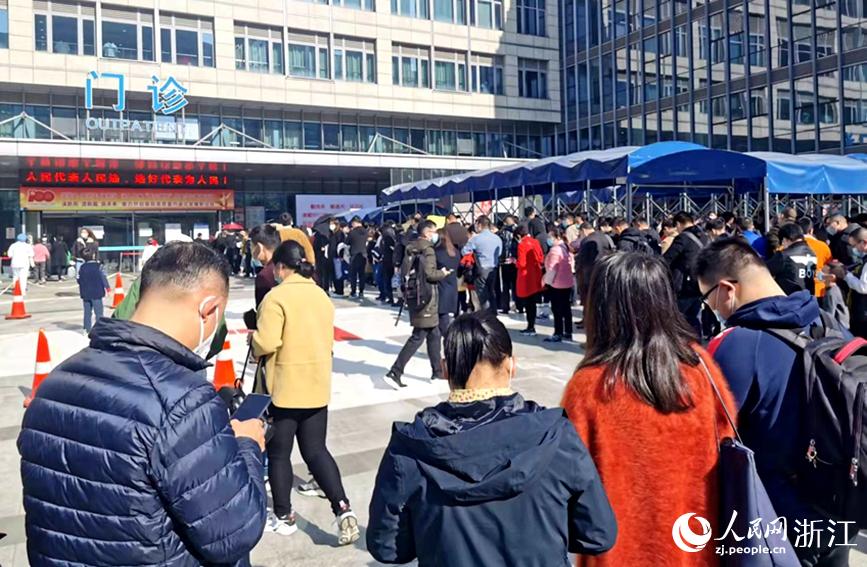 市民在寧波李惠利東部醫院進行核酸檢測。人民網 章勇濤攝