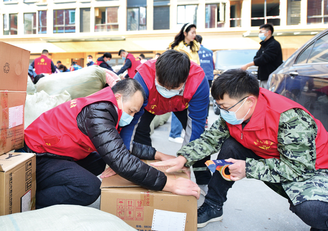 打包、裝箱、搬運……近日,位于浙江義烏北苑街道何麻車小區的“愛心衣物轉運站”,義烏商城房產、生產資料市場分公司支部共建暨“衣舊情深愛心傳遞”志愿服務活動在此舉行;顒又,兩個支部向“愛心衣物轉運站”捐贈舊衣300余件、舊鞋10余雙。50余名黨員、團員志愿者身著紅馬甲,和“義烏好人”老丁一起,忙著打包衣物,準備發往新疆和田地區,送給需要的人。(錢旭升)