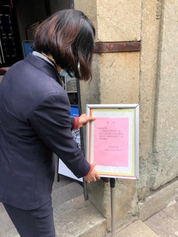 鳳凰山管理處工作人員將最新防疫管理措施貼公示于景區入口。鳳凰山管理處供圖