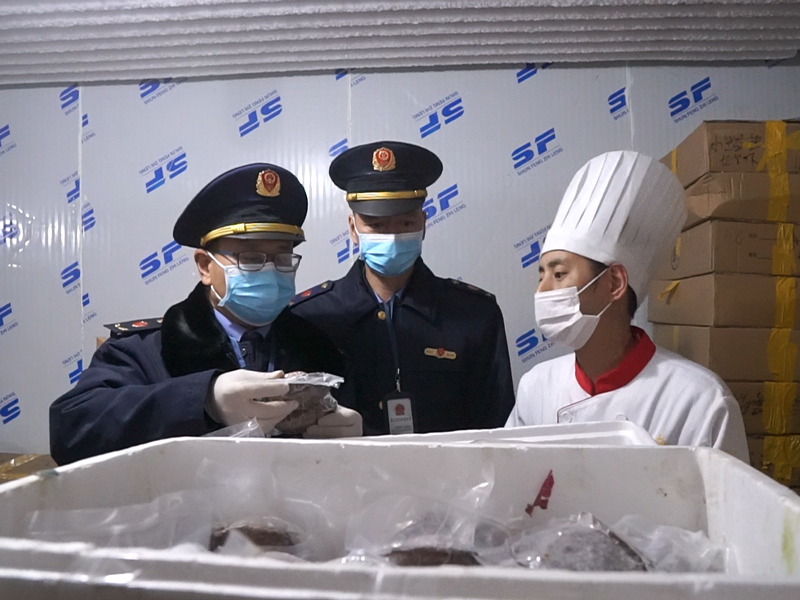 “這個鮑魚是廣州的嗎?”“對,這是新鮮的買過來后,自己加工、包裝過的!薄叭绻羞M口冷鏈食品,要特別注意……”在該縣裕錦大酒店,永嘉縣市場監執法人員仔細檢查近段時間以來的食品及原料采購臺賬,并詳細詢問冷庫內各類食材的產地等相關信息。酒店行政總廚潘光耀告訴記者,考慮到防疫期間的食品安全問題,目前他們采購的基本上是國產食材,國產的東西也挺好的,比較安全。