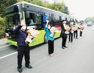 天雖冷,心很熱。記者在上虞區委黨校集中隔離點看到,每一位解除隔離人員都要先經過醫護人員的消毒,在簡短的醫學提示后,每人都會收到一份包括鮮花和防疫包在內的“返家暖心禮物”。然后,大家一個接一個有序上車。盡管戴著口罩,但從輕快的動作中,仍可以看出大家的喜悅之情。
