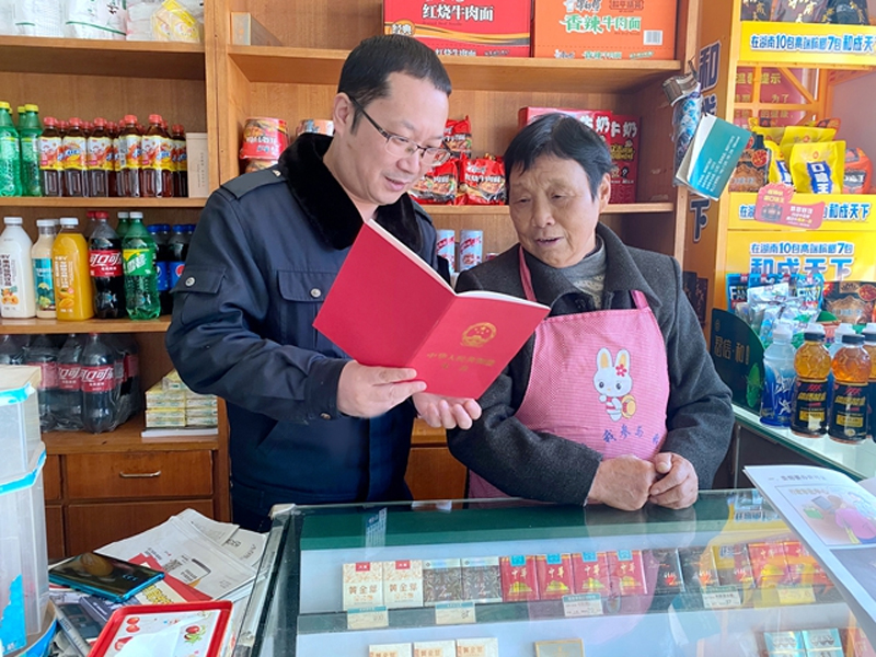 “法律涉及每個人生活的方方面面,只有學習、了解法律,才能更好地保障自身權益!痹陂L興縣所前社區,長興縣煙草專賣局黨員志愿者挨家挨戶開展走訪宣傳,為居民講解憲法、民法典知識,持續為社區群眾“普法充電”。