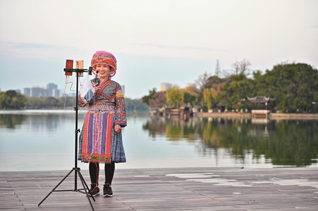 在嘉興南湖邊,“苗族小許”在抖音上開始自己的首次直播!靶履晷職庀,南湖是紅船起航地,風景優美,在這里開啟我新職業的第一步很有意義!毙≡S說。(田建明)