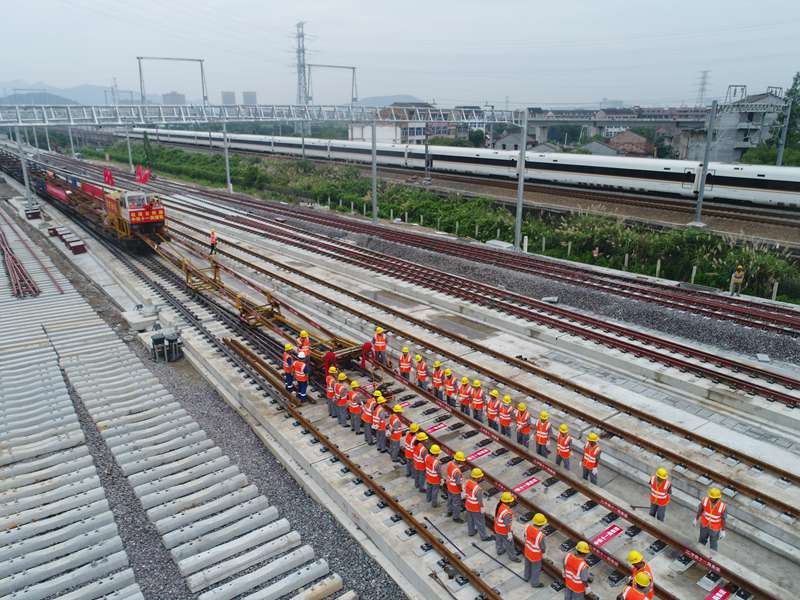 2021年6月22日,杭紹臺鐵路全線鋪軌貫通。杭紹臺鐵路有限公司供圖