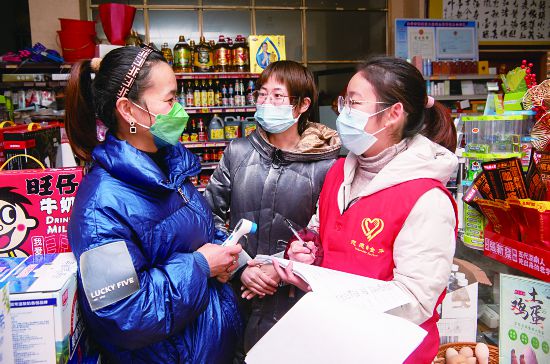 1月11日,在金華婺城區城北街道站前社區,放寒假回金的大學生傅雨曦,穿上紅馬甲協助社區工作人員到沿街店鋪核查防疫措施落實情況,打電話了解外地返金人員行程及疫苗接種情況。傅雨曦說,她是共青團員,和同學報名參加婺城大學生寒假疫情防控志愿服務,在社區、疫苗接種點等地做公益服務。(時寬兵)