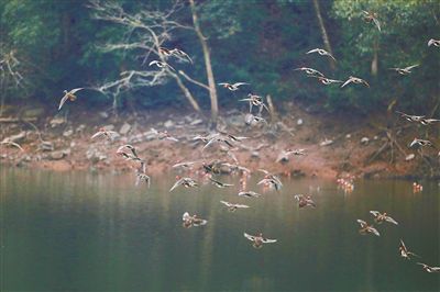 生態環境部南京環境科學研究所鳥類專家崔鵬研究員介紹,鴛鴦對棲息地生態環境要求極高,是濕地及河流湖泊生態系統環境質量評價的重要指示物種,此次拍攝到大規模野生鴛鴦種群在四明山區域越冬,表明這里優良的自然條件為鴛鴦等鳥類生存繁衍提供了豐富的食物資源和良好的棲息環境。