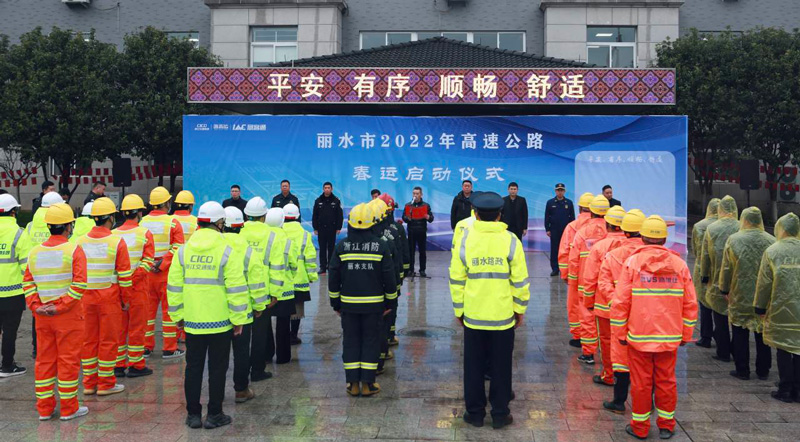 1月17日上午10時,浙江省交通集團高速公路麗水管理中心聯合麗水市交通局、麗水市應急局、麗水市治堵辦、高速交警、消防、麗水市交通運輸綜合行政執法隊等六家單位,共同舉行“文明交通 溫暖春運”2022年麗水高速春運啟動儀式,護航春運,守護麗水高速安全暢通。