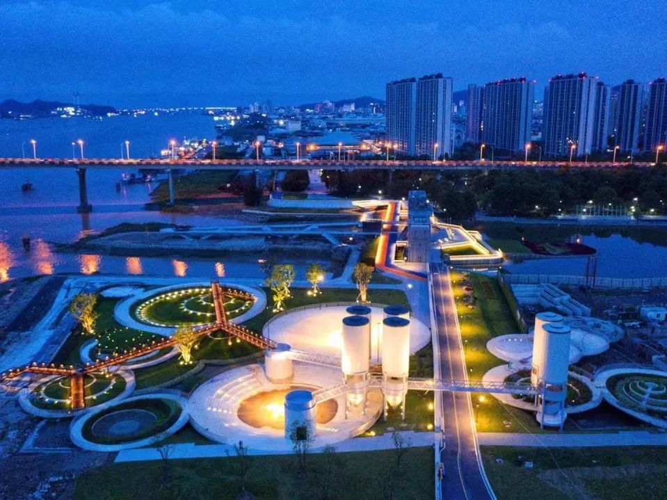 在臺州椒江區閘口公園里,海塘變身生態綠道,成為公園主干道,周邊設置的“超級碗”生態濕地系統,將永寧河水經過植物凈化、微生物降解、沙濾后,導入戲水池供游客使用,最后通過濕地凈化排入江里,實現綠色生態循環。