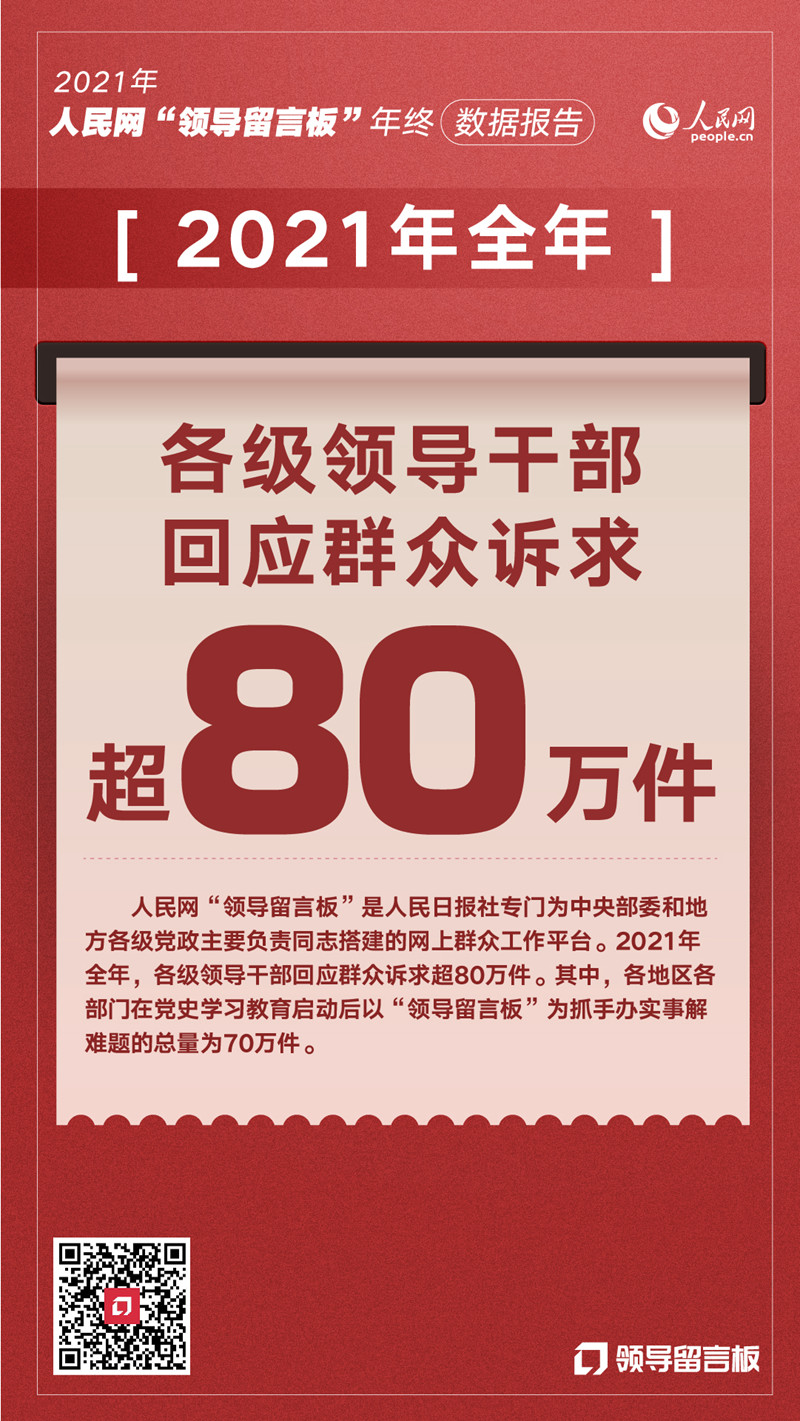 人民網“領導留言板”發布2021數據報告 超80萬件群眾訴求獲回應