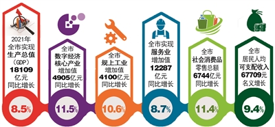 1月21日,記者從杭州市統計局獲悉,2021年,杭州全市實現生產總值(GDP)18109億元,同比增長8.5%,高于全國0.4個百分點,與浙江省持平,兩年平均增長6.2%,杭州全市實現一般公共預算收入2387億元,全國排名進位至第5,其中稅收收入2234億元,全國排名進位至第4。