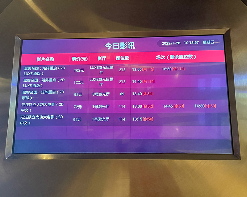 電影院的排片表。孫正祈攝