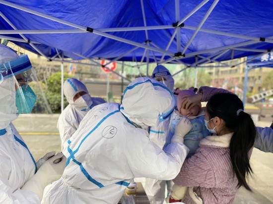 醫護人員想盡辦法為嬰幼兒做核酸檢測