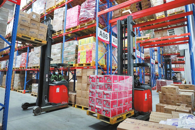 湖州市德清縣新安鎮一物流中心一片繁忙,春節臨近,工作人員搬運商品,準備配送至上海、杭州等地。該公司目前商品種類高達5200多種,為保障華東地區商品供應充足,春節期間照常運行,近期每天吞吐貨物達6萬多箱。(陸一平)