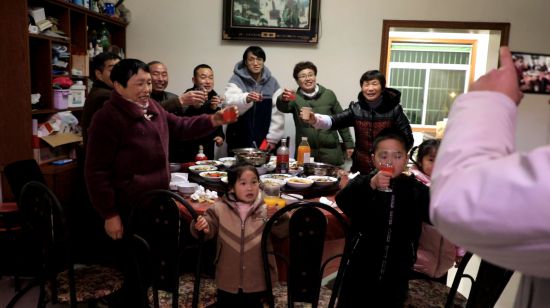 一道道家常菜很快擺滿了整張圓桌,香味彌漫在空氣中,放好碗筷、斟上飲料,一大家子一邊舉杯歡慶,一邊撥通了楊翔妻子富程莉的視頻電話。