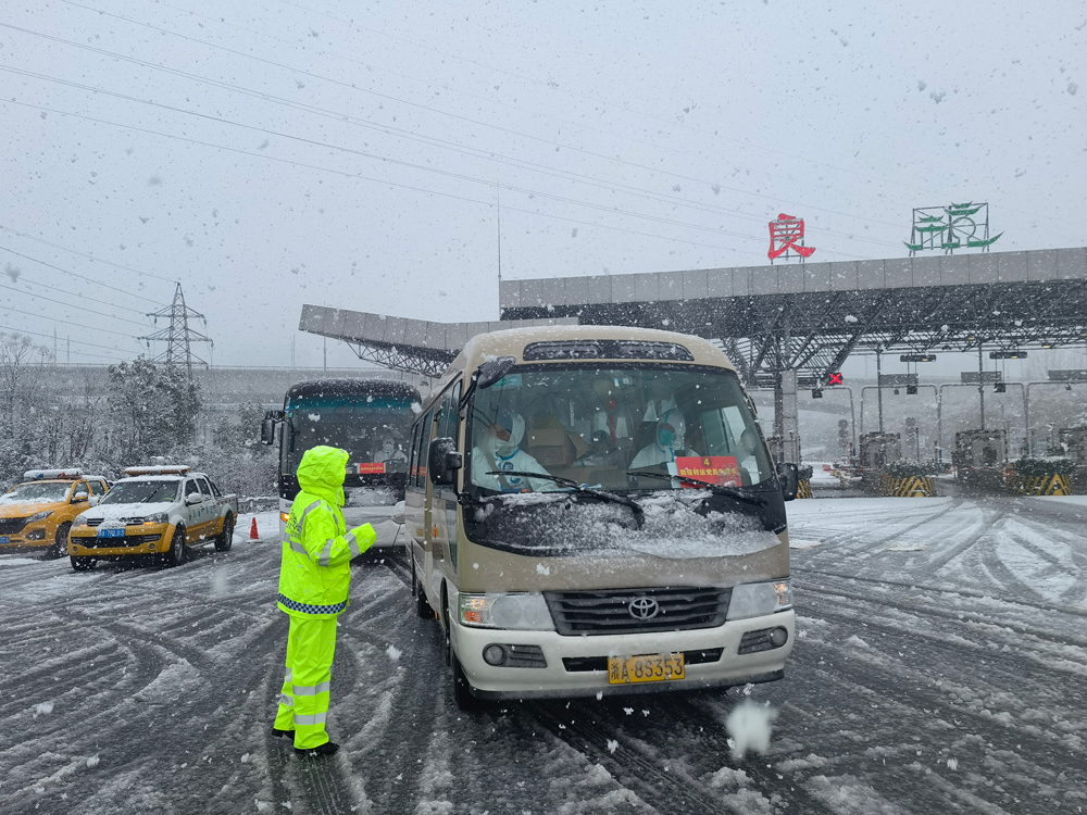 2月7日早上7點,余杭下起了鵝毛大雪,路面積起了厚厚一層雪,調度專班的13輛大巴車踏上了前往嘉興的路,接送在那邊酒店進行集中隔離的人員回家。