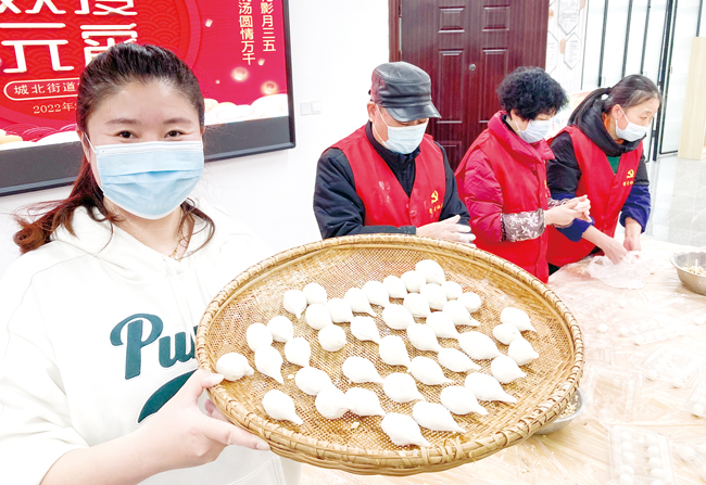 2月11日下午,金華市婺城區城北街道常青社區舉辦“巧手包湯圓、歡樂迎元宵”活動,社區邀請居民歡聚一堂,搟皮調餡,動手包了頗具金華地方特色的蘿卜絲鮮肉湯圓以及餃子和餛飩,送給社區里的獨居和孤寡老人。(時寬兵)