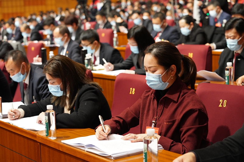 與會代表聆聽、審議政府工作報告。人民網 郭揚攝