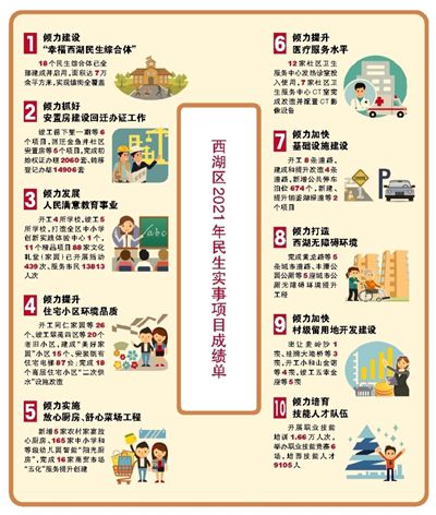 民生承諾,件件落實——西湖區2021年10件民生實事項目均已如期完成,涉及公共服務設施提升、老舊小區人居環境提升、回遷安置、教育配套設施、基礎設施、智慧醫療、留用地項目開發等方方面面,浸潤著群眾的安全感、獲得感、幸福感,交出了一份暖意濃濃的民生答卷。