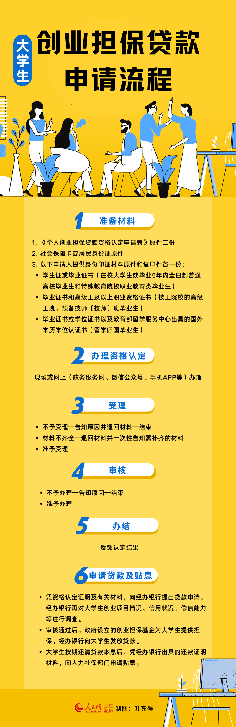 在了解了“代償”的含義后,如果還是想申請創業擔保貸款該如何操作呢?以浙江大學生為例,人民網浙江頻道進行了梳理。