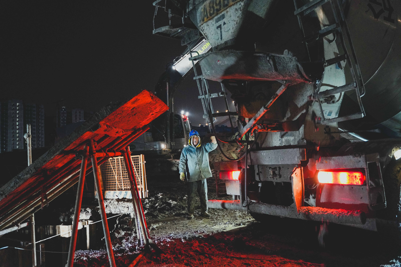 早晨8點,寒風刺骨,但是鋼筋班組的江東法的額頭上卻淌下汗水,他從天蒙蒙亮時就開始綁扎鋼筋了,幾個小時的連續作業讓他汗流浹背!白罾涞臅r候手都變得僵硬,但是項目正在加緊趕工期,我們都不敢松懈。今年過年我也沒回去,就是希望能快一點,再快一點!苯瓥|法說。