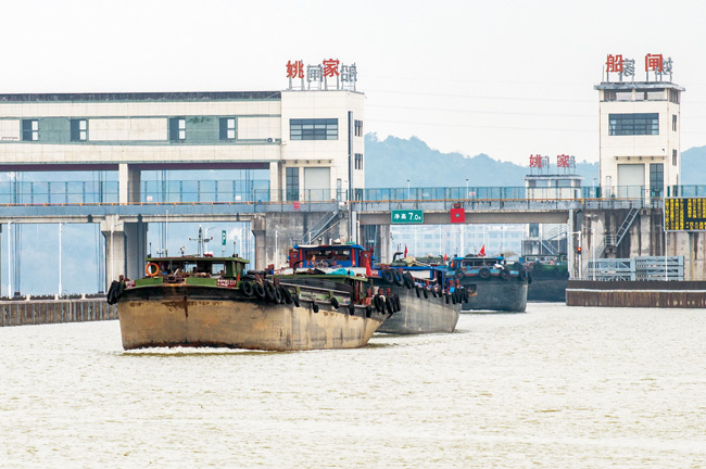 2月19日,錢塘江中上游衢江(金華段)航道新年恢復通航首日,一排千噸貨船排起長隊,駛向衢江上游載貨。自2018年錢塘江中上游航運開通以來,水路貨物運輸日益繁忙。其中2021年金華蘭溪市姚家樞紐過閘船舶達8986艘,載貨668.72萬噸,同比增長58%,連續三年快速增長。(胡肖飛)