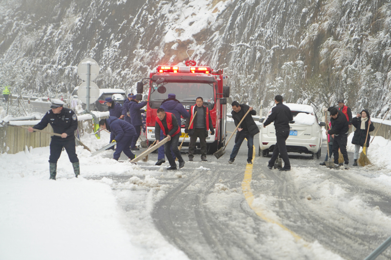為保持道路暢通,泰順縣還建立應急聯動勤務機制,配備編織袋1.8萬個、融雪工業鹽50噸、警示牌300多個,啟用撒鹽車、養護作業車等機械設備,對積雪路段進行鏟雪作業,截至2月21日10時,共出動養護保暢人員近100人次、撒鹽約8噸。