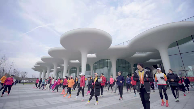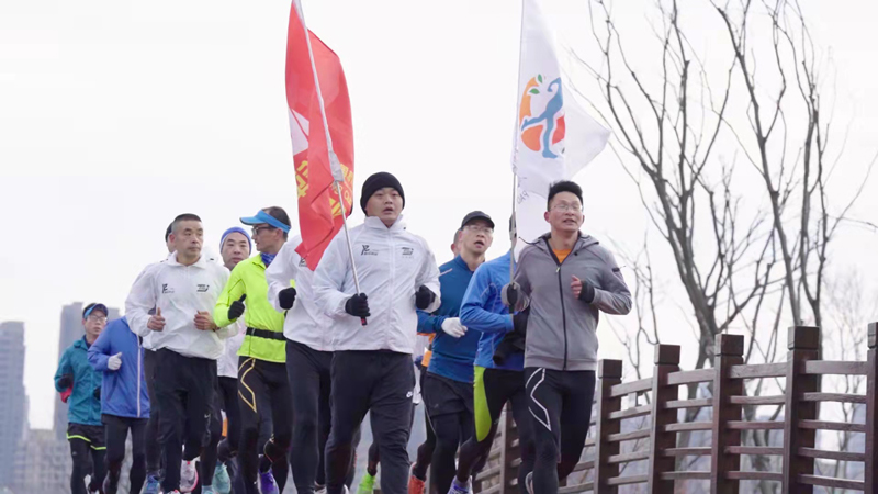 不到早上7點,室外氣溫還很低,但是依舊阻擋不了市民的熱情,已經有不少隊員在互相打招呼,做起了跑步前的熱身運動。