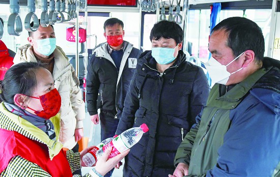 2月22日,在金華市區公交南站,申紹琴、童繼強等志愿者向乘客倡導做“光瓶行動”的先行者,喝光瓶中水,如沒有喝完,要把它帶走繼續喝,不浪費一滴水,以培養生活節水好習慣,樹立文明節水新風尚。據了解,金華是國家節水型城市,人均占有水資源2100立方米,低于全國水平(約2200立方米),還存在季節性缺水、水質性缺水等情況。(李建林)