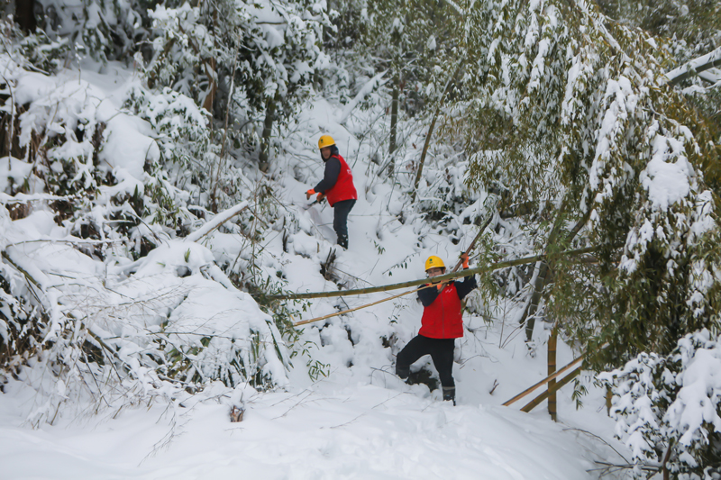 2月22日,紅船共產黨員服務隊第一時間上山開展巡線,檢查線路通道狀況。陳冬馨攝