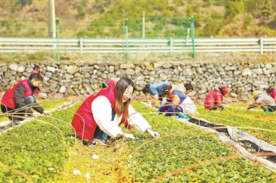 2月24日,在杭州淳安縣汾口鎮百畝畈村茶葉育苗基地,黨員志愿者與茶農一道搶抓農時培管茶苗,穿梭在育苗茶地中進行除草、順苗、施肥、壘溝等管理工作,并將出圃茶苗銷往外地。